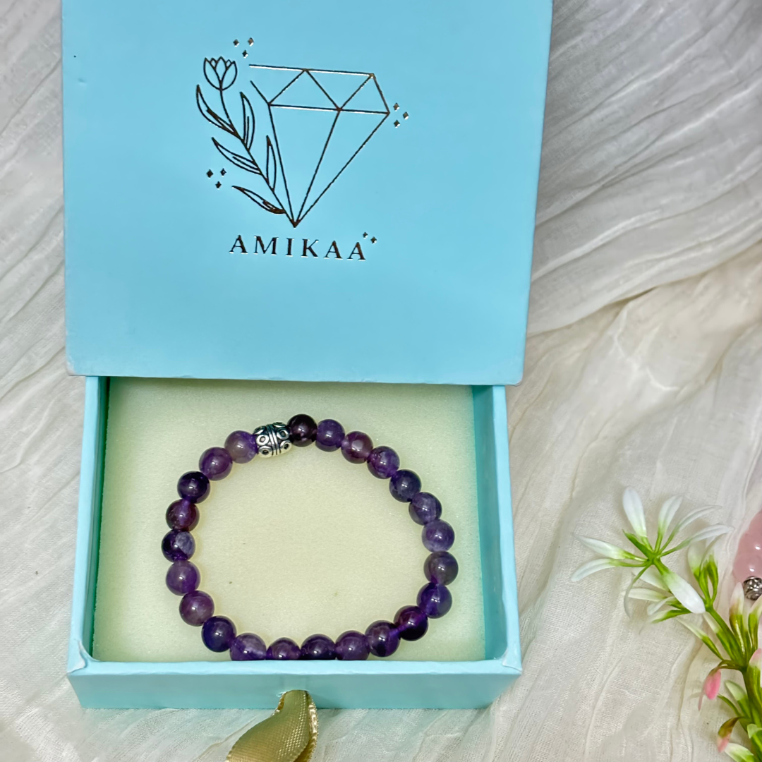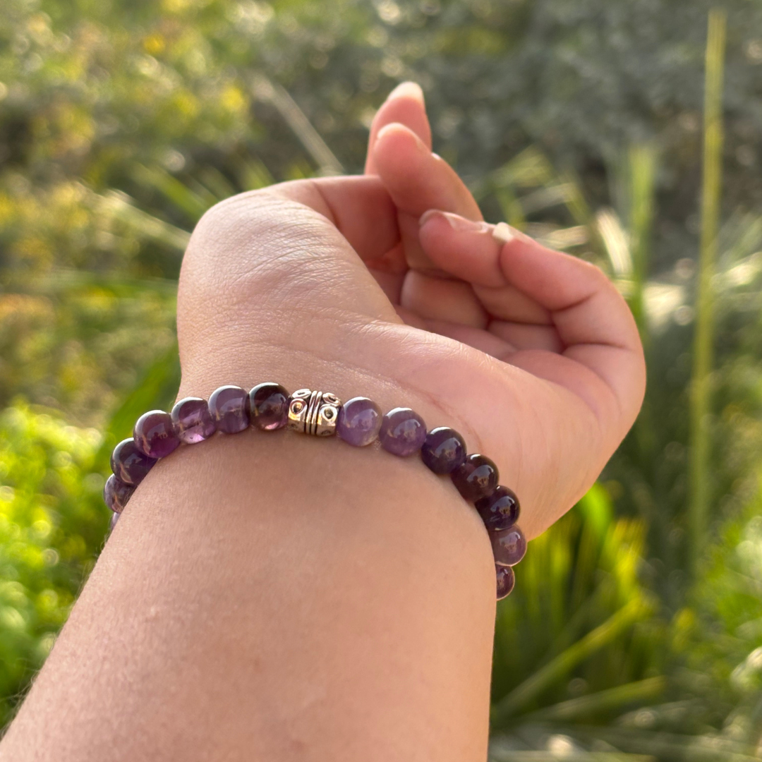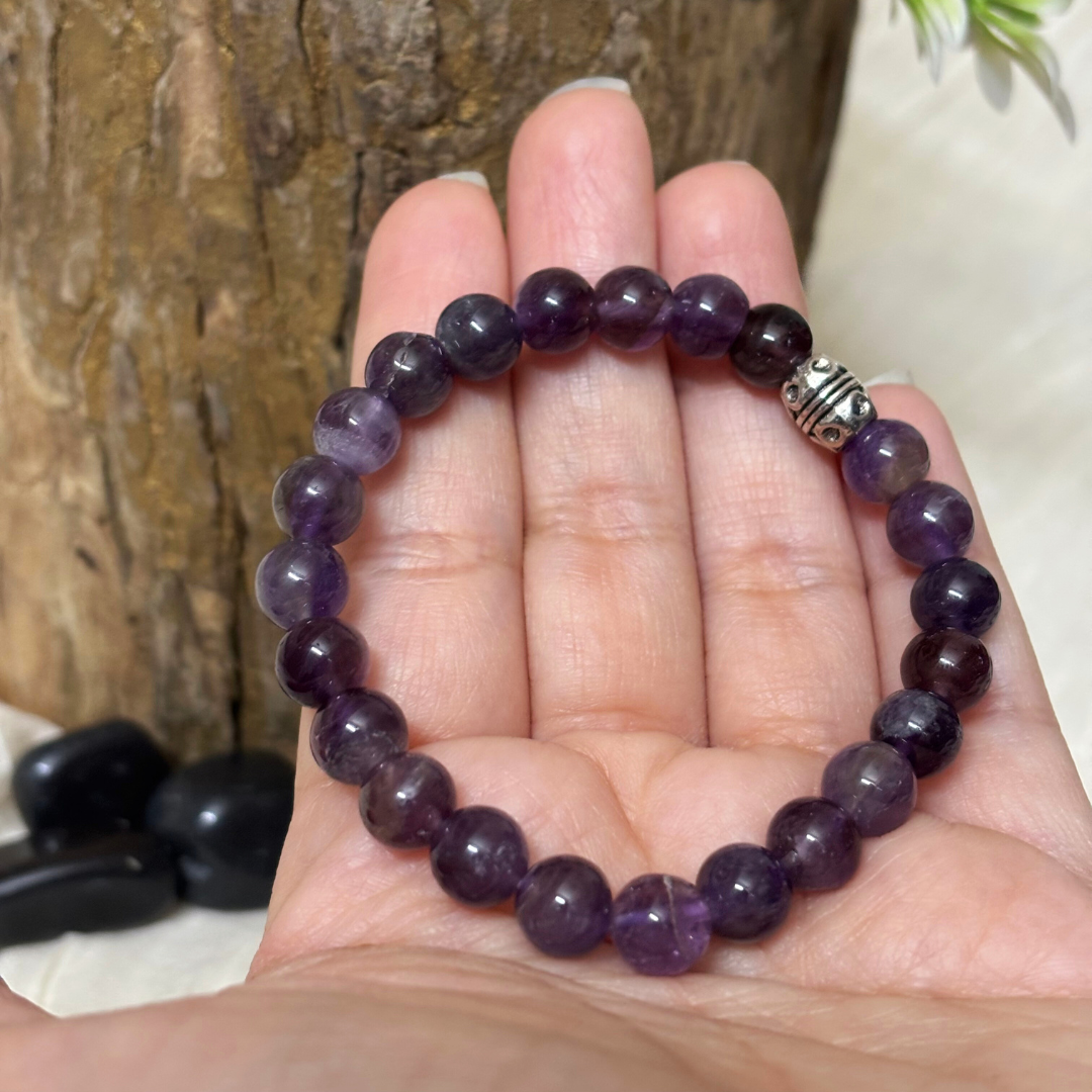 - Natural Amethyst Beads: High-quality 8mm Approx. round beads made from genuine amethyst, renowned for its soothing and protective properties.